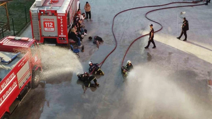 Düzce Üniversitesi öğrencileri tarafından başlatılan 'Doğal Hayatta Doğal Afetlere Hazırlanıyorum Projesi' kapsamında öğrenciler ilk eğitimlerini tamamladı. İtfaiye personelleri öğrencilere yangına müdahale konusunda hem teorik hem de uygulamaları eğitim verdi.
