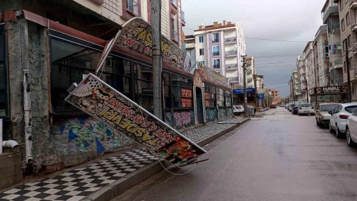 Afyonkarahisar'da saatteki hızı yer yer 25 kilometreye kadar çıkan fırtına hayatı olumsuz etkiledi. Şiddetli rüzgar bazı iş yerlerinin tabelalarını yerinde söktü.