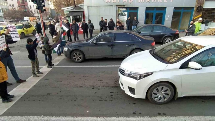 Ağrı'da Kudüs Platformu bünyesinde bir araya gelen gençler, İsrail'in Gazze'ye saldırılarını protesto etti.