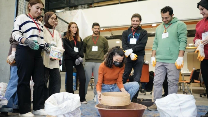 TÜBİTAK Bilimsel Eğitim Etkinliklerini Destekleme Programı çerçevesinde desteklenen, AGÜ Öğretim Üyeleri Dr. Sinan Akyüz ve Dr. Sümeyra Ayık ile Yüksek Lisans öğrencileri Ece Sultan Karacık ve Mustafa Burak Köroğlu'nun koordinatörlüğünde yürütülen 'Gelenekten Geleceğe: Toprak Yapım Teknikleri Uygulamalı Eğitimleri' Sümer Kampüsü'nde yapıldı. Çok sayıda cam, seramik ve toprak sanatçısı ile akademisyen tarafından verilen eğitime, çevre illerdeki ve deprem bölgesindeki çeşitli üniversitelerin mimarlık ve inşaat bölümlerinden lisans ve lisansüstü öğrenciler katıldı. Eğitimde üniversite öğrencilerine toprak bazlı yapı malzemeleri, malzemelerin kullanımı ve uygulama teknikleri anlatıldı.