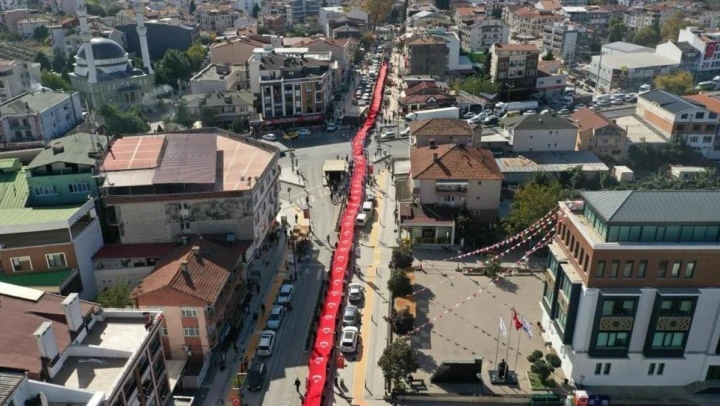 Yalova'nın Altınova İlçesinde askeri bando eşliğinde 400 metrelik Türk Bayrağıyla Cumhuriyet Yürüyüşü gerçekleştirildi.