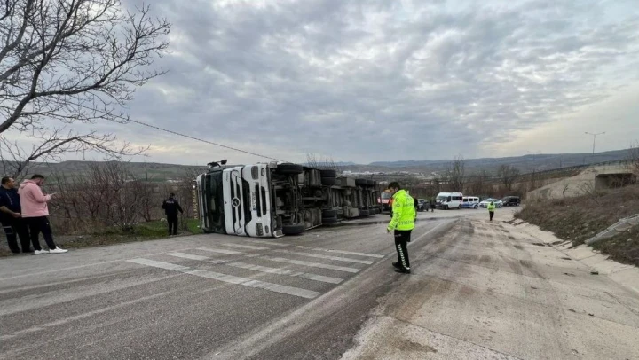 Amasya'nın Suluova ilçesinde sürücüsünün kontrolünden çıkan tır, yola yan yatarak devrildi. Yaralanan sürücü hastaneye kaldırıldı.