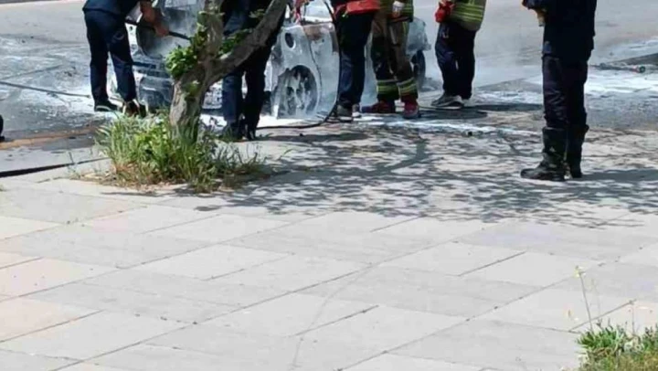 Ankara'nın Etimesgut ilçesinde seyir halindeyken alevlere teslim olan araç kullanılamaz hale geldi.