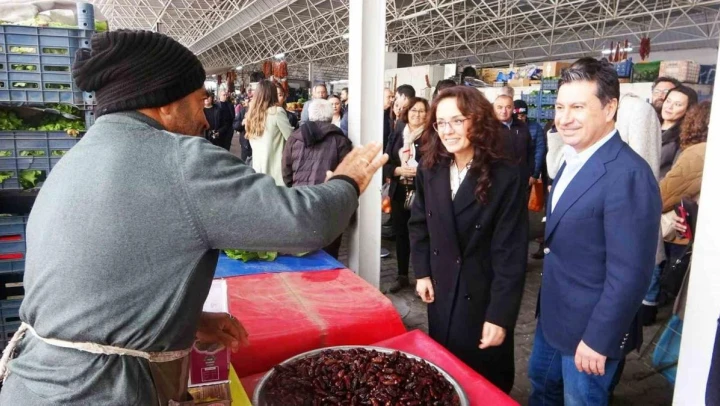Muğla Büyükşehir Belediye Başkan adayı Ahmet Aras'ı İl Başkanı Zekican Balcı, CHP Menteşe Belediye Başkan Adayı Gonca Köksal eşlik etti. CHP Muğla Büyükşehir Belediye Başkan adayı Ahmet Aras, halk pazarı ziyareti öncesi İlçe Başkanlığında halk buluşması gerçekleştirdi.