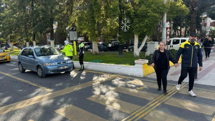 Aydın'da trafik ekiplerinden yayalara ve sürücülere yaya geçidi eğitimi