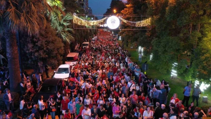 Atatürk Kent Meydanı'ndan başlayarak Adnan Menderes Bulvarı boyunca devam eden korteje, on binlerce vatandaş Türk bayraklarıyla katıldı. Çerçioğlu da, kortejin önünde yer alarak yürüyüş boyunca söylenen marşlara eşlik etti.