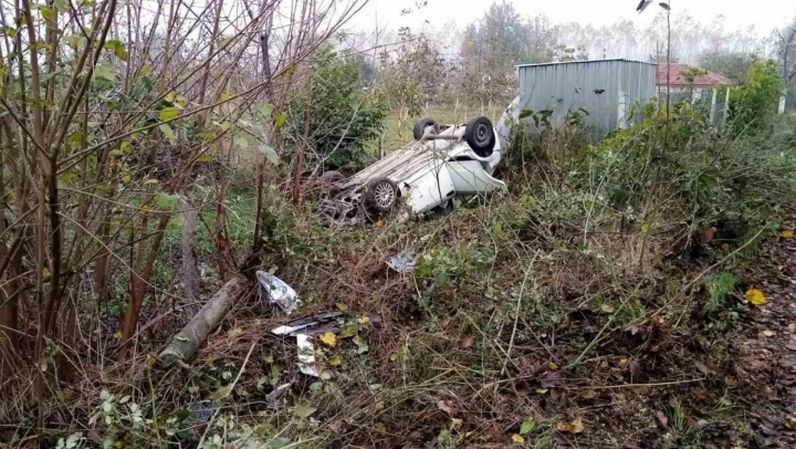 Bursa'nın İnegöl ilçesinde meydana gelen kazada direğe çarpan otomobil tarlaya uçtu baba ve oğlu yaralandı.