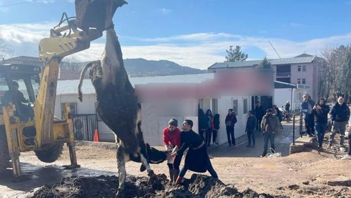Bankanın şube müdürüyle sorunlar yaşandığını ve uzun süredir şikayetçi oldukları iddia eden vatandaşlar, 'Müdür giderse tosun keseceğiz' diye önceden verdikleri sözü tutmak için büyükbaş hayvanı bankanın önünde kesti.