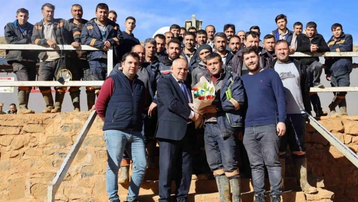 Ocaklarda çalışan işçilerin günlerini kutlayan Başkan Esat Öztürk, onlarla sohbet ederek birlikte yemek yedi. Konu ile ilgili açıklamalarda bulunan Başkan Öztürk; '4 Aralık Madenciler Günü münasebetiyle maden ocaklarını ziyaret ederek ocak sahiplerinin ve işçilerimizin bu anlamlı günlerini kutladık. Onlar zor bir sektörde çalışıyorlar. Yeri geliyor yerin yüzlerce metre altından maden çıkarıyorlar. Ben hem iş adamlarımıza hem de işçilerimize kolaylıklar diliyorum. Rabbim kazadan beladan korusun. İlçe olarak madencilik sektöründe iyi bir durumdayız. Türkiye'nin en büyük 2. Demir Maden Ocağı ilçemizde bulunmaktadır. Bu sektörde çalışan insanlarının kazançları annelerinin ak sütü kadar helal olduğuna inanıyorum. Biz, bu sektörde faaliyet gösteren iş adamlarımıza hem dua ediyoruz, hem de teşekkür ediyoruz. Çünkü ilçemizde bu sektörde dolaylı yoldan 10 bin vatandaşımız ekmek yiyor. Biz onlarla gurur duyuyoruz' ifadelerini kullandı.