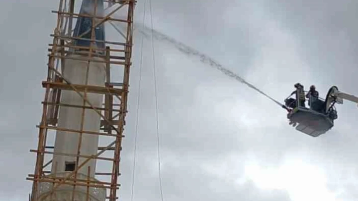 Ankara'nın Sincan ilçesinde yıldırım düşen minare alevler arasında kaldı.