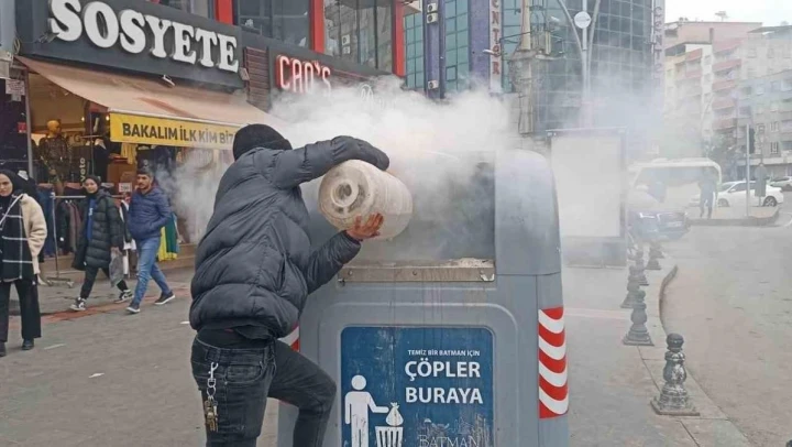 Batman'da çöp konteynerinde çıkan yangın bir vatandaş tarafından bidonla söndürüldü.