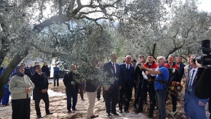 Bilecik'in Bayırköy beldesinde başlayan zeytin hasadına Vali Şefik Aygöl de katıldı.