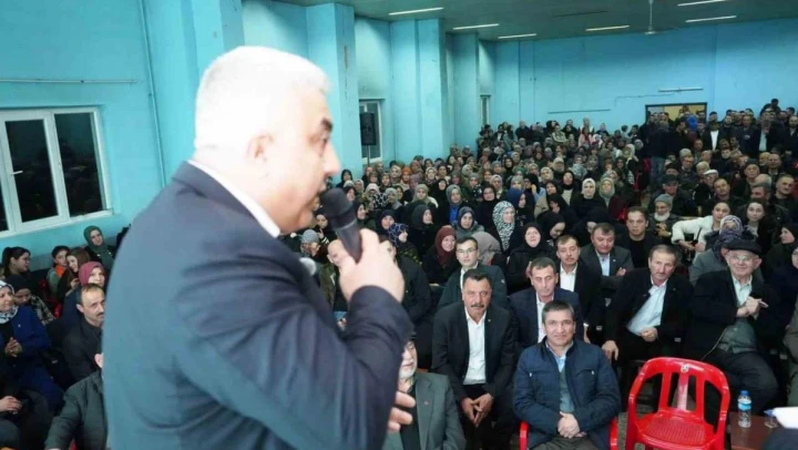 Halkın çok yoğun ilgi gösterdiği toplantıda salona giremeyen kalabalık için canlı yayın yapıldı.