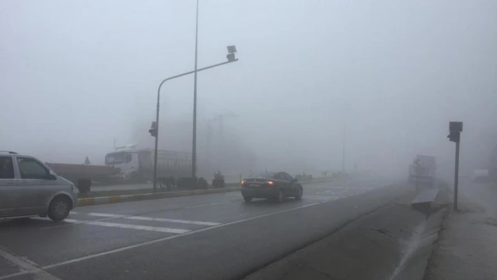 Hatay'ın Belen ilçesinde, yoğun sis nedeniyle görüş mesafesi 70 metreye kadar düştü.