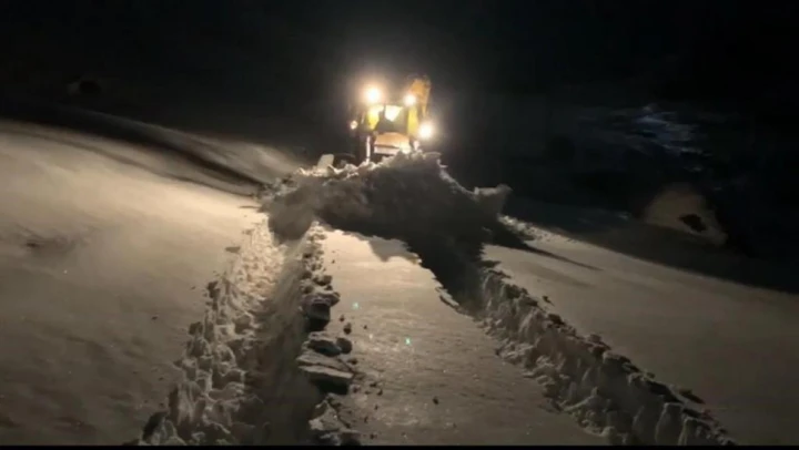 Şırnak'ın Beytüşşebap ilçesinde yaylada kalan vatandaşların karla kaplı yolları, ekipler tarafından açılıyor.