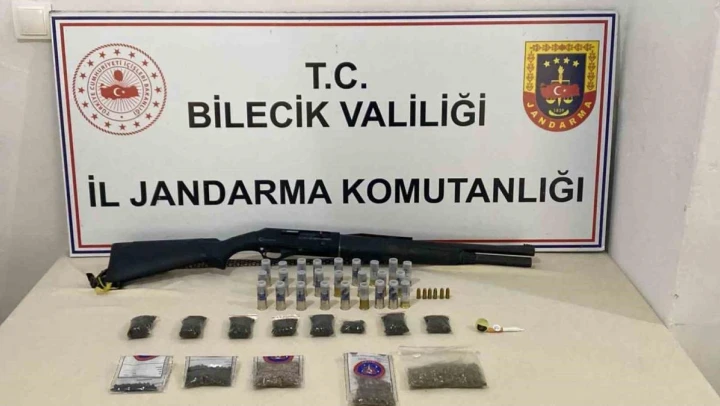 Bilecik'in Pazaryeri ilçesinde düzenlenen operasyonda çok sayıda uyuşturucu madde, tüfek ve tüfek fişeği ele geçirildi.