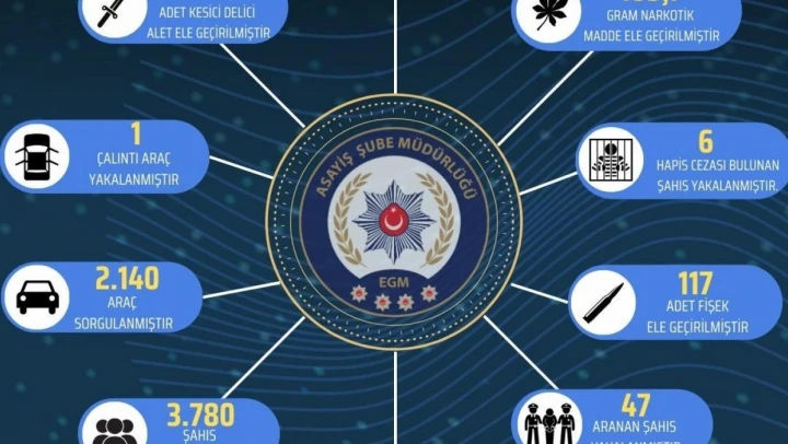 Bingöl İl Emniyet Müdürlüğü'ne bağlı Asayiş Şube amirliğince 2024 yılı Ocak ayı içerisinde yapılan çalışmalar açıklandı. Yapılan açıklamada, '2 adet ruhsatsız tabanca, 105 gram narkotik madde, 117 adet fişek, 3 kesici delici alet el geçirildi. Hapis cezası bulunan 6 şahıs, hırsızlık suçu faili 46 şahıs ve 47 aranan şahıs yakalandı. Aynı zamanda 3 bin 780 şahıs ve 2 bin 140 araç sorgulanırken bir de çalıntı araç bulundu' denildi.