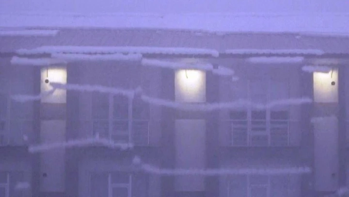 Bitlis'te 6 katlı binanın çatısında biriken kar kütlesi şelale gibi caddeye aktı. Saniye saniye görüntülenen olayda ölen ya da yaralanan olmadı.