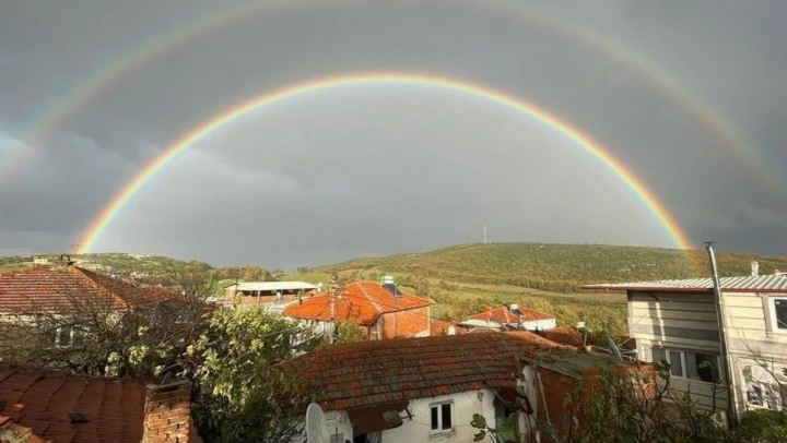 Bursa'da gün boyu etkili olan yağış sonrası Bursa'nın çeşitli bölgelerinden görülen gökkuşağı, ilgi odağı oldu. Günbatımına yakın ortaya çıkan gökkuşağı, binlerce kişi tarafından sosyal medya hesabında da paylaşım rekoru kırdı. Gökyüzünde oluşan renk cümbüşü, deniz ve dağ manzarasıyla vatandaşların ilgi odağı oldu.