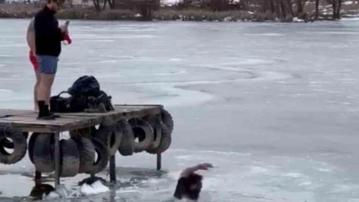 Buzlu gölette fotoğraf çektirirken, buz kırılınca kendini suda buldu