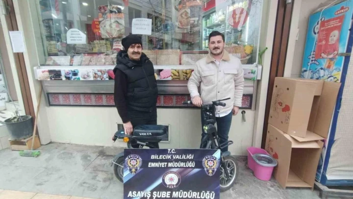Bilecik'te bir apartmanda çalınan elektrikli bisiklet, İl Emniyet Müdürlüğü Asayiş Şube Müdürlüğü Hırsızlık Büro Amirliği ekiplerince kısa sürede bulunarak sahibine teslim edildi.