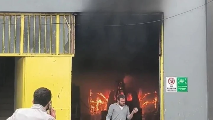 Bursa'nın İnegöl Mahmudiye Mahallesi'nde faaliyet gösteren cam imalathanesinde yangın çıktı. İmalathane içindeki kamyonet alev alev yandı.