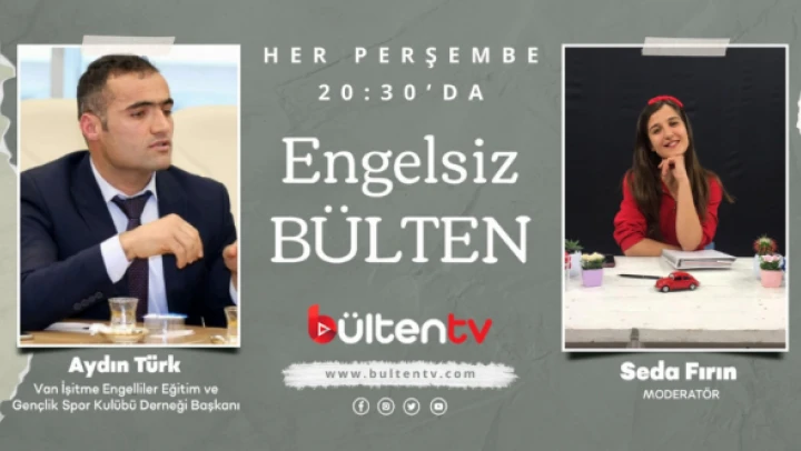 'Engelsiz Bülten' programının bu haftaki konuğu Van İşitme Engelliler Eğitim ve Gençlik Spor Kulubü Derneği Başkanı Aydın Türk olacak.