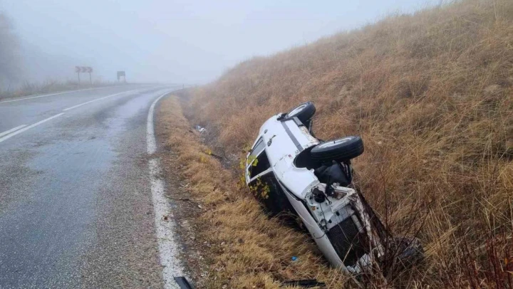 Çorum'un Alaca ilçesinde yoğun siste sürücüsünün kontrolünden çıkan otomobil, takla atarak şarampole devrildi. Kazada 3 kişi yaralandı.