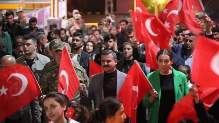 Çukurca da bayrak ve meşaleli Cumhuriyet yürüyüşü düzenlendi