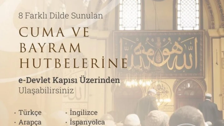 Diyanet İşleri Başkanı Ali Erbaş, X sosyal medya hesabından yaptığı açıklamada, Cumhurbaşkanlığı Dijital Dönüşüm Ofisi işbirliğiyle gerçekleştirilen çalışma çerçevesinde başkanlığın cuma ve bayram hutbelerinin 8 dil seçeneği ile artık e-Devlet Kapısı'nda yer alacağını belirterek, 'Vatandaşlarımız, 'http://diyanet.gov.tr' web sitemizde olduğu gibi e-Devlet Kapısı'ndan da hutbelerimize ulaşabilecekler. Hayırlı olsun' ifadesine yer verdi.