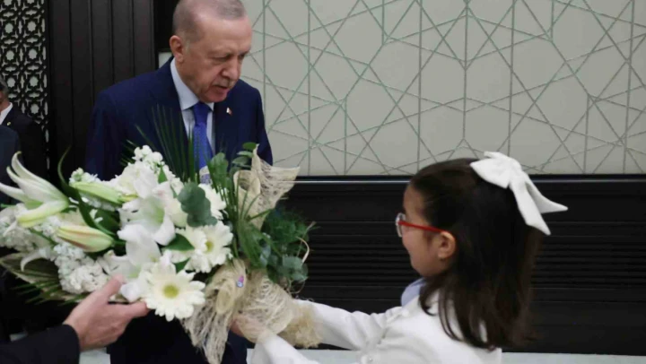 Cumhurbaşkanı Recep Tayyip Erdoğan, 23 Nisan Ulusal Egemenlik ve Çocuk Bayramı dolayısıyla Cumhurbaşkanlığı Külliyesi'nde Milli Eğitim Bakanı Yusuf Tekin ve beraberindeki çocukları kabul etti. Renkli görüntülere sahne olan programda Cumhurbaşkanı Erdoğan, çocuklarla yakından ilgilendi, onlarla sohbet etti.