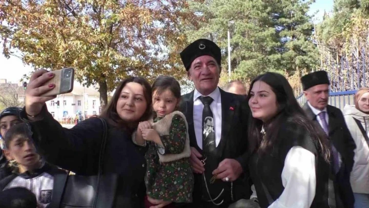Erzurum'da 29 Ekim Cumhuriyet Bayramı kutlamalarında Yakup Evliyaoğlu adlı vatandaş, Atatürk'e benzerliği ile ilgi odağı oldu.