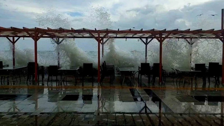 Zaman zaman boyu yaklaşık 5 metreye kadar çıkabilen dalgalar, sahil kıyısındaki demir korkulukları ve duvarları da aşarak sahil alanına aktı. Sahil alanının suyla kaplanırken, vatandaşlar zor anlar yaşadı.