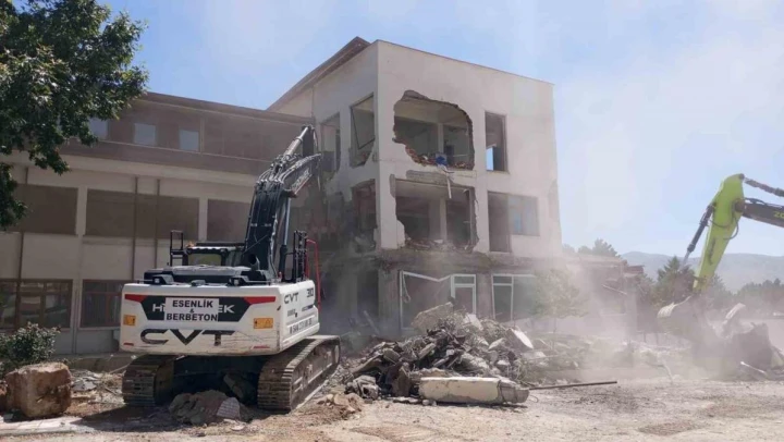 Büyük yıkımın yaşandığı Doğanşehir ilçesinde de ağır hasarlı yapıların yıkımlara başlanırken, ilçede 37 yıldır belediye hizmet binası olarak kullanılan ve depremlerde hasar alan üç katlı binanın da yıkım işlemleri kontrollü bir şekilde gerçekleştirildi.