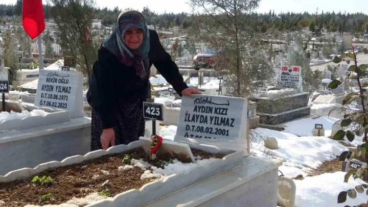 Kahramanmaraş merkezli depremlerde oğlu ve gelini ile iki torununu kaybeden Azet Yılmaz, günün büyük bir bölümünü ailenin defnedildiği şehir mezarlığında geçiriyor. Mezarlığın evi haline geldiğini belirten yaşlı kadın, çocuklarını çok özlediğini söyledi.