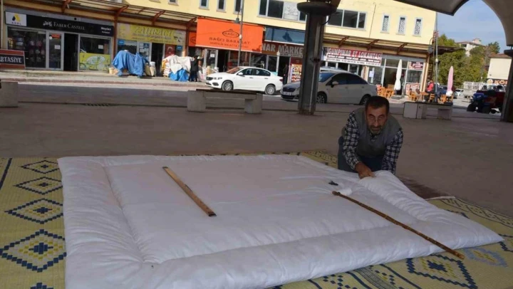 Malatya'nın Darende ilçesinde açık alanda yorgancılık yapan esnaf Hasan Çelik, havaların iyice soğuması ile yetkililerden kendisine çalışacağı bir yer verilmesini istiyor.