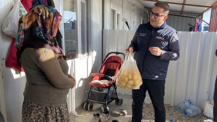 6 Şubat depreminde ağır hasar alan iller arasında bulunan Adıyaman'da, depremzede vatandaşların barındığı Vartana Prefabrik Evlere kamyonla limon getirten Samsat Belediye Başkanı Halil Fırat, bu limonları depremzedelere dağıttı.