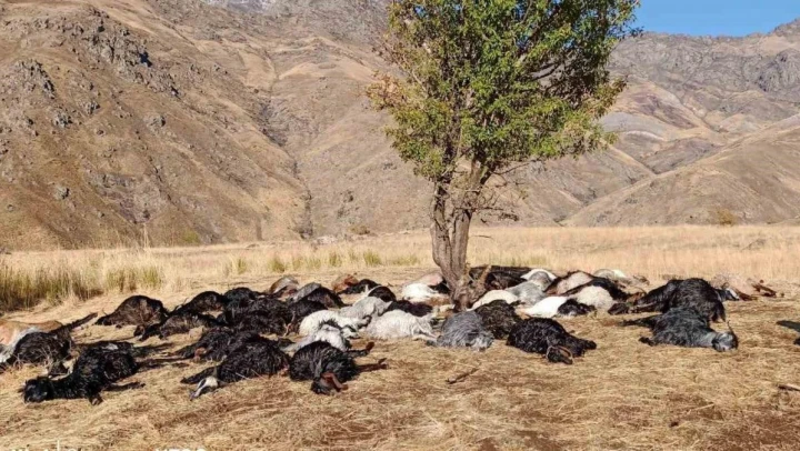 Hakkari'nin Derecik ilçesinde yıldırım düşmesi sonucu 62 küçükbaş hayvan telef oldu.