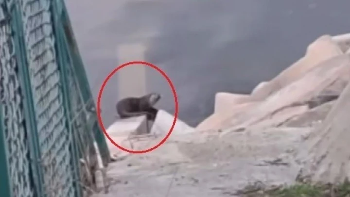 Diyarbakır'da Devegeçidi Barajı'nda görülen nesli tehdit altındaki su samuru, cep telefonu kamerasıyla kaydedildi.