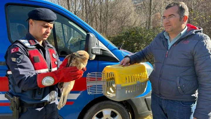 Devriye gezen jandarma ekipleri yaralı kızıl şahin buldu