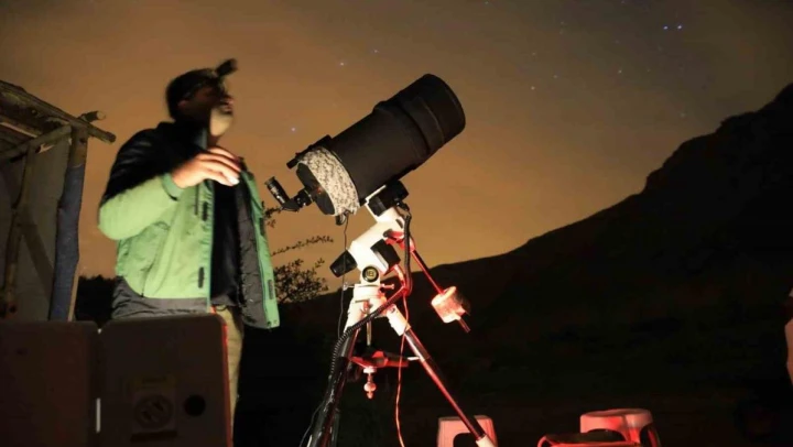 Uzay ve gökyüzünün iyi gözlemlendiği yerlerden biri olan Bitlis'te uzun yıllardır uzay ve doğa gözlemi yapan Dr. Öğretim Üyesi Cihan Önen, dondurucu soğuğa rağmen uzay tutkusundan vazgeçmiyor. Yılın bu dönemlerinde net şekilde izlenebilen Orion Bulutsusu, Andormeda Galaksisi ve Ülker Takım Yıldızı'nı da gözlemleyebilmek için kolları sıvayan Önen ve ekibi, Tatvan ilçesinin 2 bin 250 rakımlı Nemrut Kalderası'nın zirvesine çıkıp eksi 3 dereceyi gören soğuk havaya rağmen gözlem yaptı. Dondurucu havaların bile uzay tutkusundan vazgeçiremediği Önen, teleskopla Orion Bulutsusu, Andormeda Galaksisi ve Ülker Takım Yıldızı'nın muhteşem ihtişamını görüntüledi. Seyrine tatminsiz görüntüleri kayda alan Önen, arşivine birbirinden değerli yeni görüntüler eklemiş oldu.