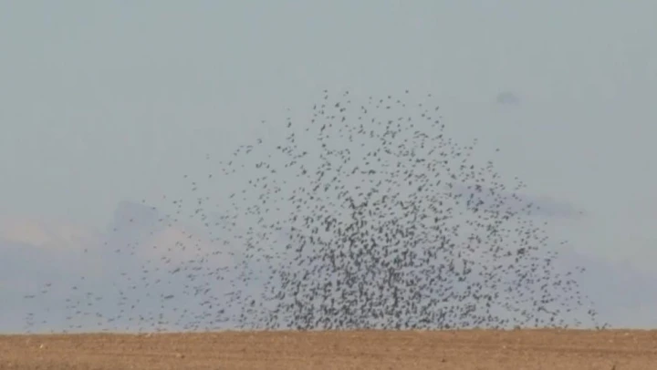 Edirne'de bir köyün üzerini sığırcık kuşları kapladı