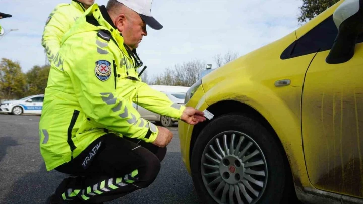 Edirne'de kış lastiği olmayan ticari taksi sürücüsüne cezai işlem uygulandı