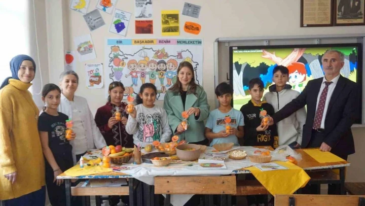 Mandalina, portakal, elma ve muz gibi yerli ürünleri tanıtan öğrenciler, aynı zamanda paketleme ve süsleme yaparak Yerli Malı Haftası'nı kutladı. Düzenlenen etkinlikte yerli malı kullanımının önemine dikkat çeken öğrenciler şiirler okudu ve arkadaşlarıyla birlikte fikir alışverişinde bulundu.