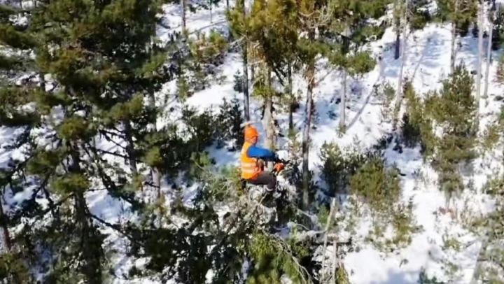 Emet Orman İşletme Müdürlüğüne bağlı ekipler 25-30 metre boyundaki ağaçlara tırmanarak karaçam gençliğine zarar vermemek için buduyorlar. Ormanın Sincaplarının budama çalışmaları dron ile havadan görüntülendi.