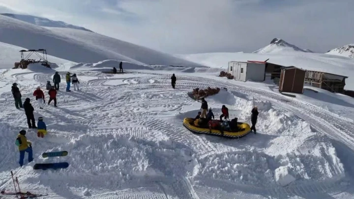 Erzincan'daki Ergan Dağı Kayak Merkezinde kar raftingi renkli görüntüler oluşturdu.