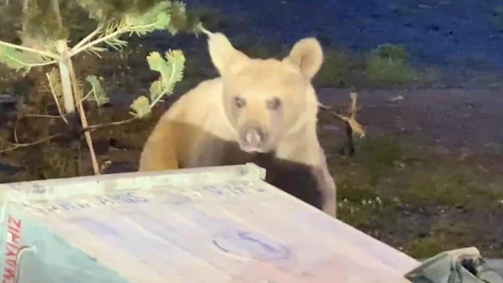 Erzincan'ın Refahiye ilçesinde, bir bozayı çöp konteynerlerinde yiyecek ararken görüntülendi.
