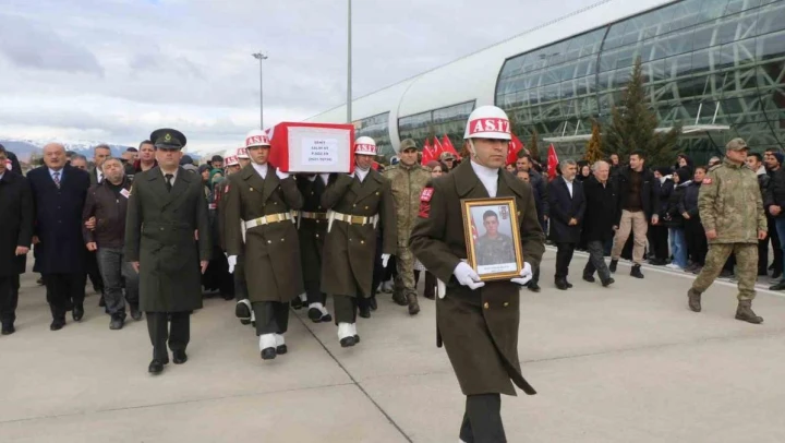 Kuzey Irak'ta Pençe Kilit Harekatı bölgesinde PKK'lı teröristlerle çıkan çatışmada şehit olan Erzincanlı Piyade Sözleşmeli Er Salih Ay'ın cenazesi, Yıldırım Akbulut Havalimanında düzenlenen törenle karşılandı.