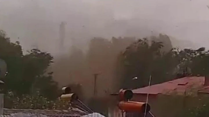 Erzurum'da etkili olan olumsuz hava, Söğütlü Mahallesi'nde hortumla kendini gösterdi.