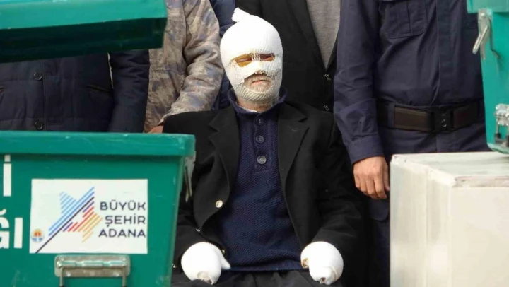 Adana'nın Kozan ilçesinde evde çıkan yangında eşi ve iki oğlunu kaybeden, kendisi de yanan acılı baba, kafası ve elleri sargılı halde cenazeye katılıp, '1992'de 6'ncı kattan düştüm. O zaman ölsem bu acıyı görmezdim' diyerek ağladı.